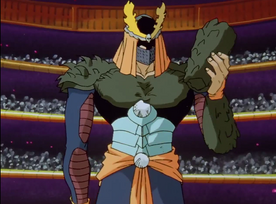 Tras que el equipo de Toguro llega a la final contra el equipo Urameshi, y que Karasu derrote polémicamente a Kurama, Bui se le adelanta a Toguro Mayor para enfrentar a Hiei. En un primer momento, Bui utiliza sus enormes hachas invocadas, junto con su increíble velocidad, para atacar a un Hiei aún más rápido. Admitiendo que no puede ganar sin necesidad de utilizar sus poderes en toda su extensión, Bui se quita la armadura, revelando su rostro y su voz. Él revela abiertamente que la armadura había actuado como un dispositivo de supresión de su energía enorme, como un medio de proteger a sus oponentes de sí mismo.