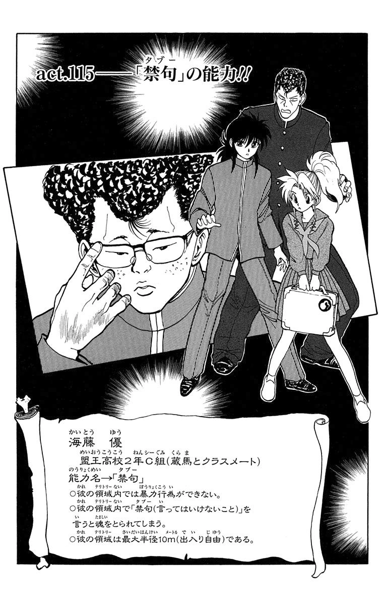 The Ability of "Taboo"!! (「禁句」の能力!!, `Tabū' no nōryoku!!) is the 115th chapter of the YuYu Hakusho manga, written and illustrated by Yoshihiro Togashi.
