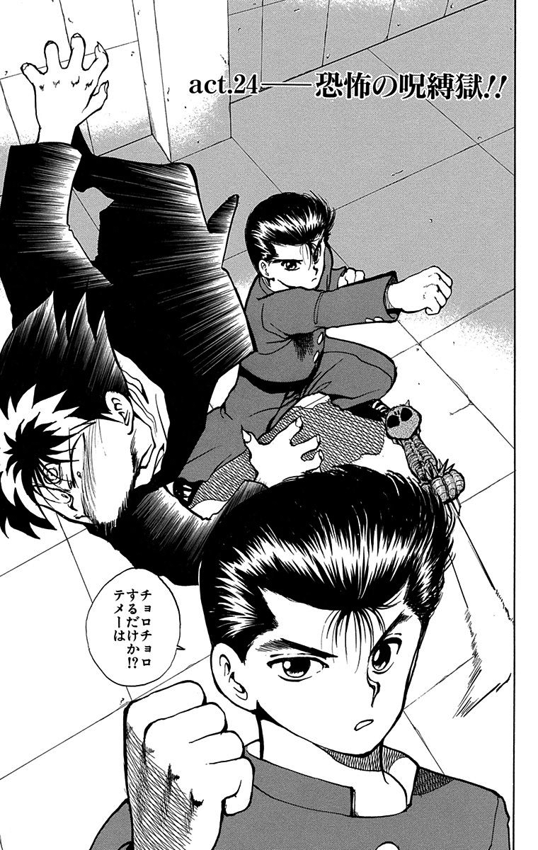 The Fearsome, Gruesome Binding Curse!! (恐怖の呪縛獄!!, Kyōfu no jubaku goku!!) is the 24th chapter of the YuYu Hakusho manga, written and illustrated by Yoshihiro Togashi.