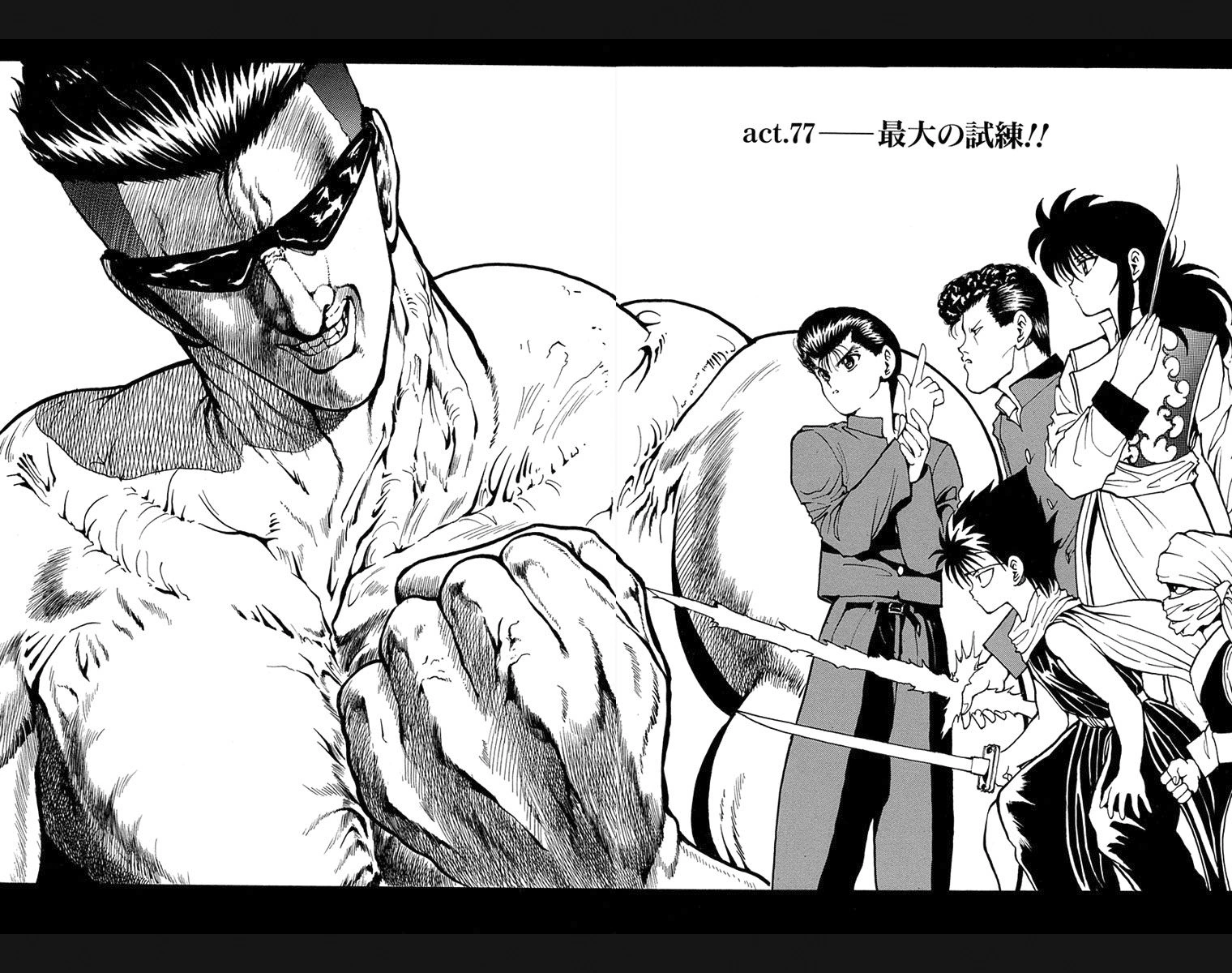 The Huge Ordeal!! (最大の試練!!, Saidai no shiren!!) is the 77th chapter of the YuYu Hakusho manga, written and illustrated by Yoshihiro Togashi.