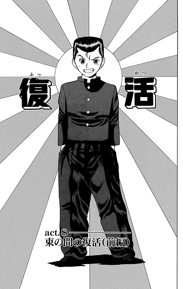 The Temporary Resurrection (Part 1) (束の間の復活 (前編), Tsukanoma no fukkatsu (zenpen)) is the 8th chapter of the Yu Yu Hakusho manga series, written and illustrated by Yoshihiro Togashi.