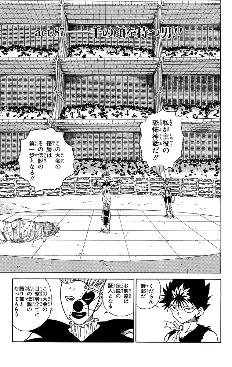 The Man With a Thousand Faces!! (千の顔を持つ男!!, Sen no kao o motsu otoko!!) is the 87th chapter of the YuYu Hakusho manga, written and illustrated by Yoshihiro Togashi.