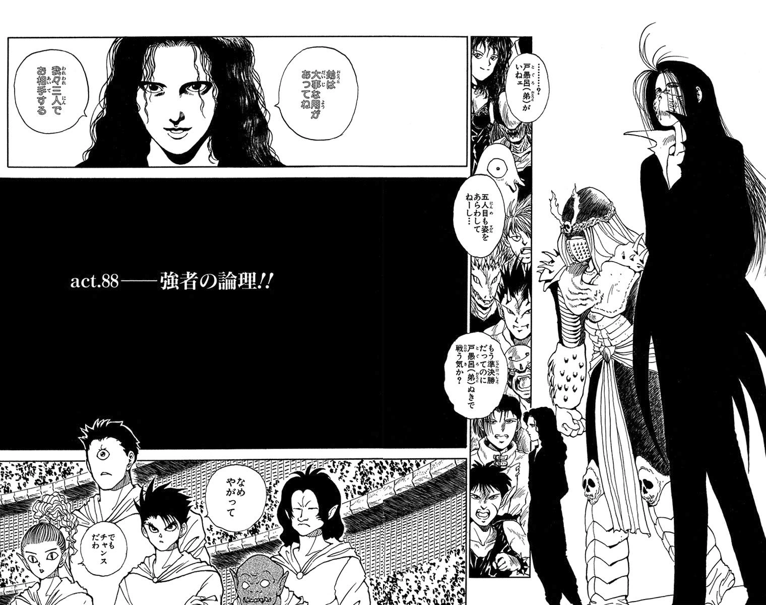 The Logic of the Powerful!! (強者の論理!!, Kyōjiya no ronri!!) is the 88th chapter of the YuYu Hakusho manga, written and illustrated by Yoshihiro Togashi.