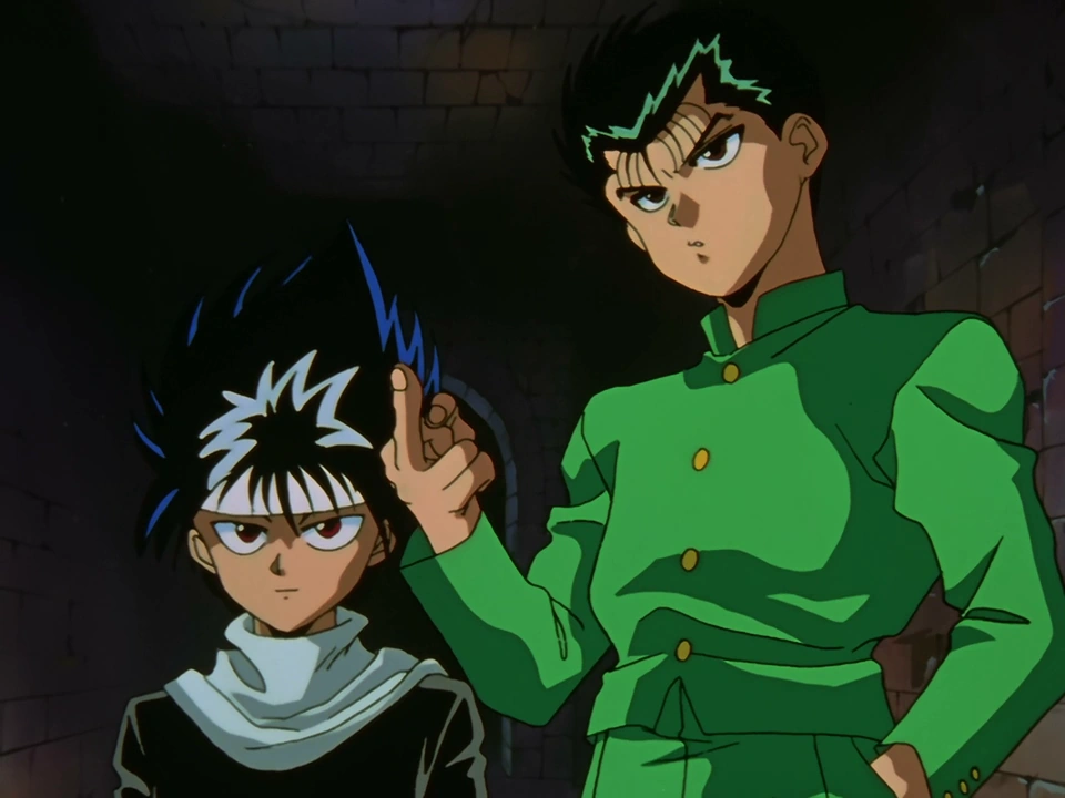Kurama starts to recover from his wounds, and out of nowhere Kuwabara springs out and begins showing off to the gang how strong he has gotten. He starts to unleash his rei ken (spiritual sword) and, to impress everyone he starts enlarging the sword until it crushes the ceiling. However, nobody was impressed (aside from Koenma, who was shocked) and then Kuwabara faints, exhausted from his display of power. Yusuke calls Botan on his communicator to query about the situation back at the Human World and Botan says that things are getting pretty worse as she gets chased by another possessed person as she smacks him down with her baseball bat. Kuwabara regains consciousness upon seeing Botan then the place suddenly begins to crumble as the gang runs out to the clearing. There they meet the next demon they have to face, Byakko, a tiger-demon. Hiei was about to face the monster but Kuwabara breaks in and tells them that he will beat the monster with his powerful spiritual sword and displays his power again, but even the tiger-demon Byakko laughs at his display of energy. Byakko then summons four mini-tiger demons from his hair and the tiger confronts Kuwabara.