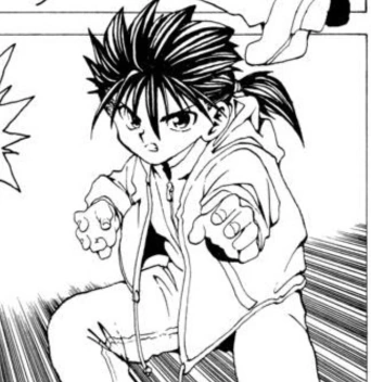 He appears with his sister to attack Yusuke Urameshi when he enters the vicinity of his home when he mistakes him for a demon seeking revenge against his mother. He and his sister try to team up and take on Yusuke, but his abilities and experience prove too much for the duo, as he just toys with them. Together with his sister, they try to combine their spirit energy and attack, but immediately stop when they hear their mother order them to stand down.